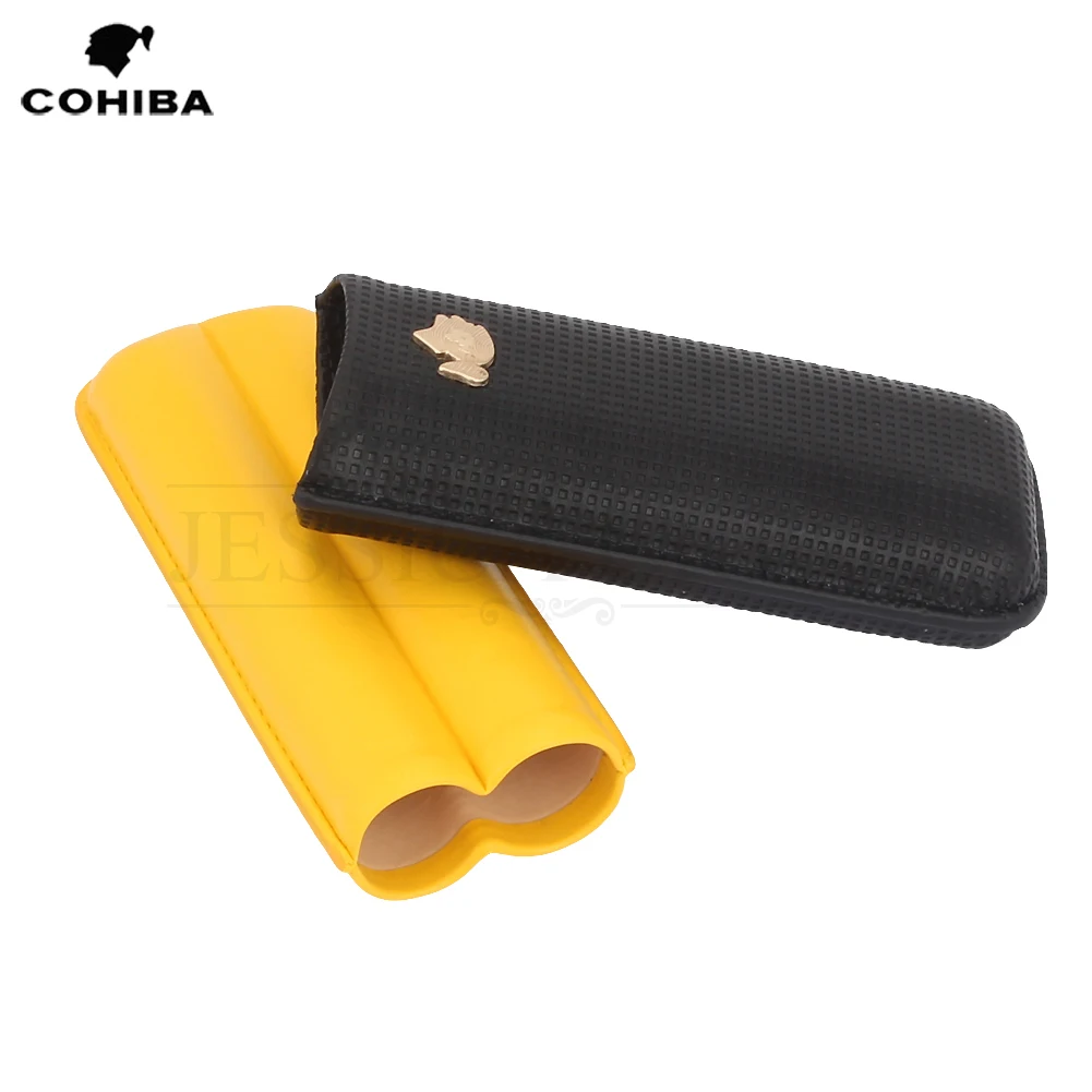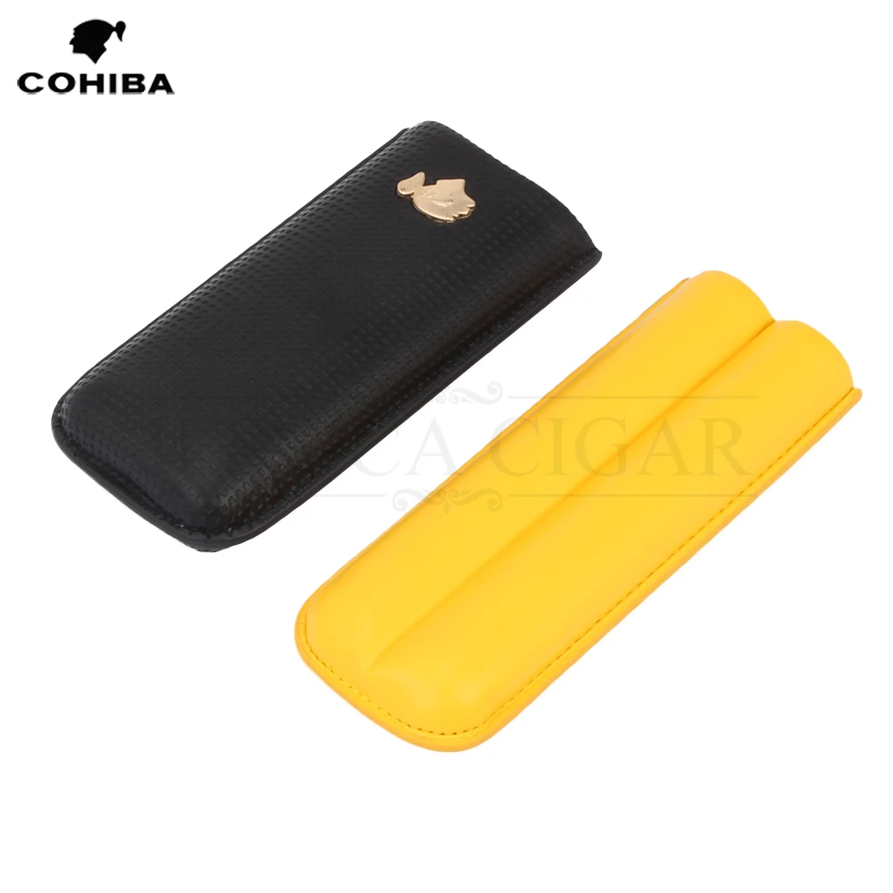 2 Tubes Travel Leather Cigar Case Portable Outdoor Humidor Mini Cigar Box