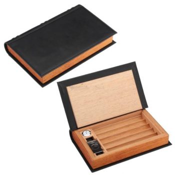 Black Cigar Case PU Leather Cedar Wood Lined Travel Humidor Box