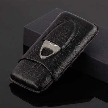 Soft Leather Cigar Holder Case Small Humidor with Steel Cutter Set and Gift Box