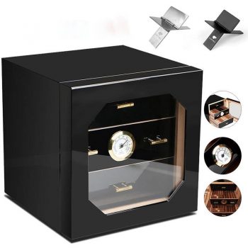 Black Luxury Cigar Humidor Cabinet Storage Box with High Gloss Finish Wood 3 Drawers Hygrometer