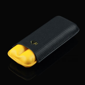 Black Yellow Cedar Wood Leather Travel Cigar Case Humidor Holder 3 Tube Lined