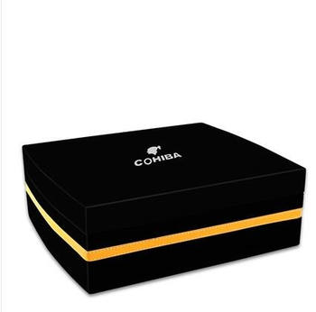 Black Glossy Leather Cigar Humidor 6 Finger Travel Case with Humidifier and Wood Tray