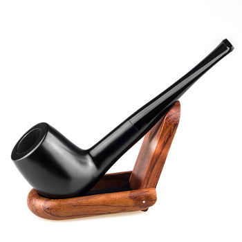 Black Ebony Wood Smoking Pipe 9mm Filter Handmade Straight Tobacco Pipe FT-519A
