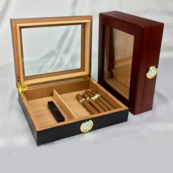 Wooden Cigar Humidor Box Glasstop Window with Hygrometer Humidifier Holds 15-20 Cigars