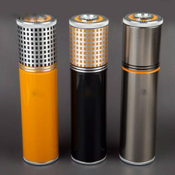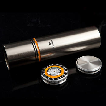 Mini Yellow Black Silver Travel Cigar Tube Aluminum Humidor with Humidifier Hygrometer