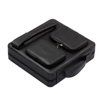 Genuine Leather Cigar Case Travel Humidor with Humidifier Wood Tray Shiny Finish