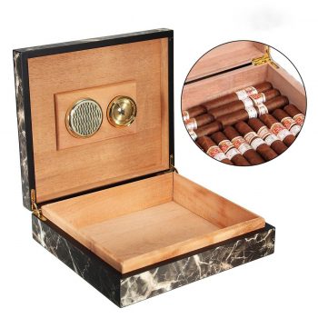 MirageBlack Cigar Humidor with Hygrometer and Humidifier for Special Maintenance