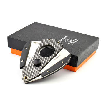 Black Handle Stainless Steel Dual Saw Blades Cigar Cutter Gift Box