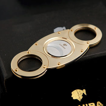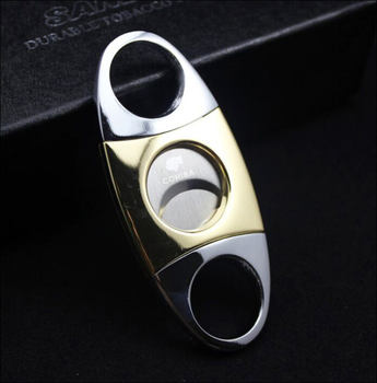 Gold Plated Dual Blade Stainless Steel Cigar Cutter Pocket Gadget Zigarre Smoking Accessory