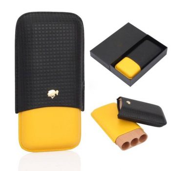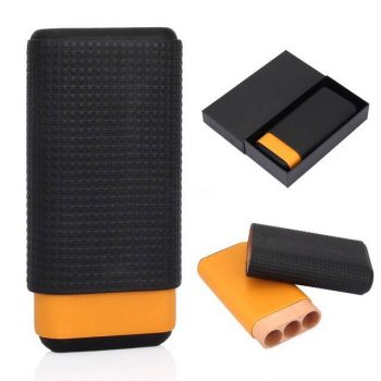 Leather Cigar Case 3CT Classic Style Portable Travel Cedar Wood Humidor for Cigars