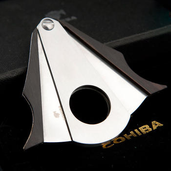 Stainless Steel Double Blades Cigar Cutter with Ebony Wood for Smoking Accessories