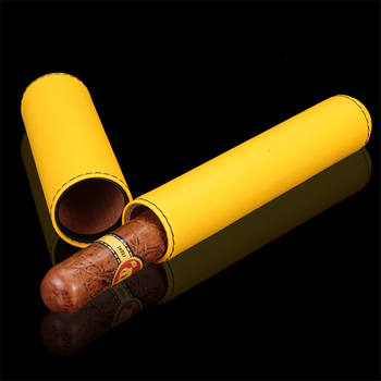 Genuine Leather Cigar Case Single Tube Holder Travel Humidor Cedar Lined Wood