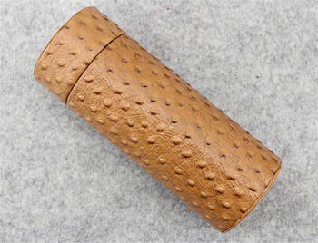 Brown Leather Cedar Lined Cigar Tube with Humidifier and Hygrometer Portable Jar
