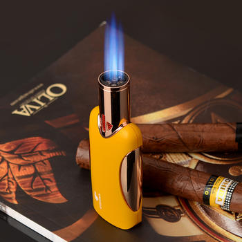 Windproof Butane Cigar Lighter Four Torch Metal Refillable Luxury Jamaican Gift Box