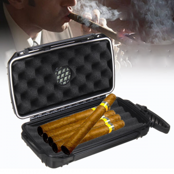 Black Cigar Storage Box Waterproof Dustproof Holds 5 Cigars for Outdoor Smoking Accessory