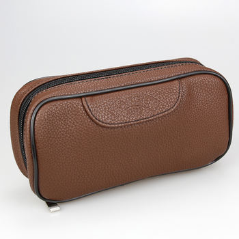 Brown Lichee Pattern Leather Smoking Pipe Bag for Tobacco and 2 Pipes
