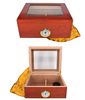 Introducing our Cedar Wood Lined Cigar Humidor, an essential accessory for any cigar aficionado. This elegant red and black cigar preservation box offers both style and functionality, designed to keep your treasured cigars in perfect condition. Crafted with precision, this wooden cigar storage solution features a premium cedar lining that naturally regulates humidity levels and enhances the aging process of your cigars.