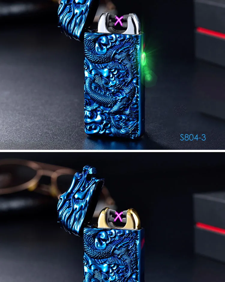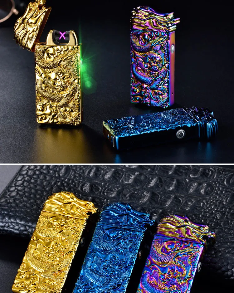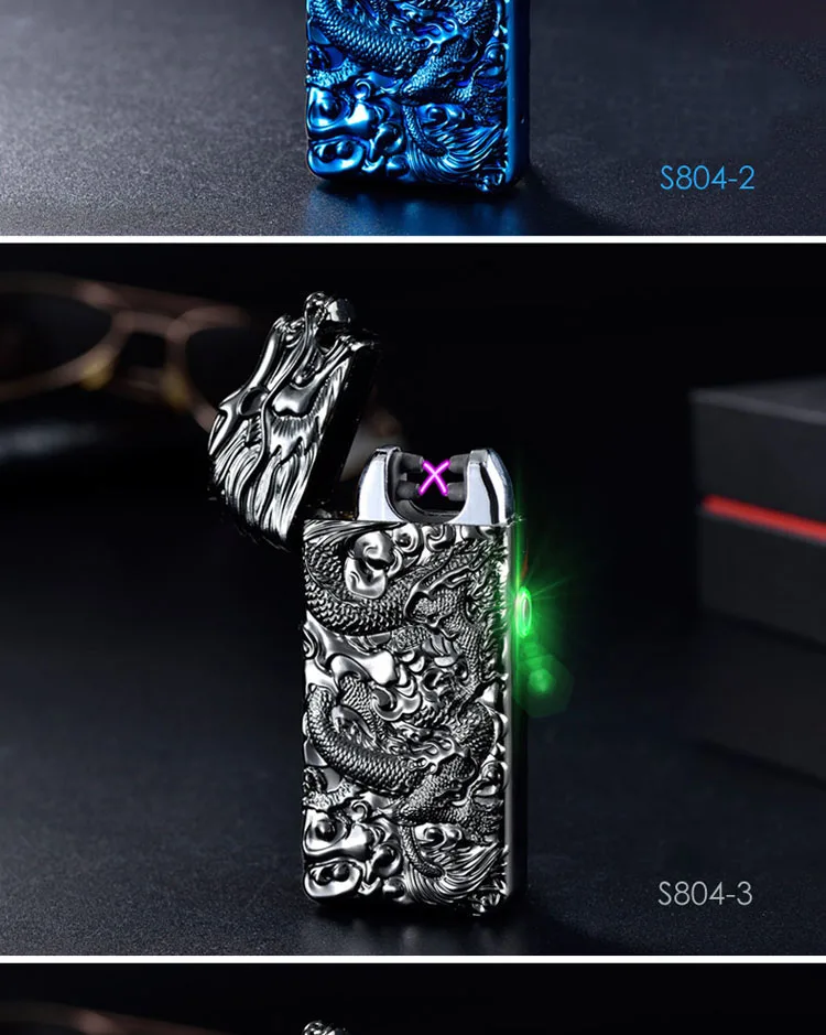 Unleash the mystique and power of the Style Dragon Design Double Arc Electronic Lighter. Crafted for those who appreciate detail and efficiency, this dragon lighter combines artistic flair with state-of-the-art technology to create a unique smoking accessory that turns heads while meeting practical needs. The striking dragon motif ignites your fascination and lights up any conversation.