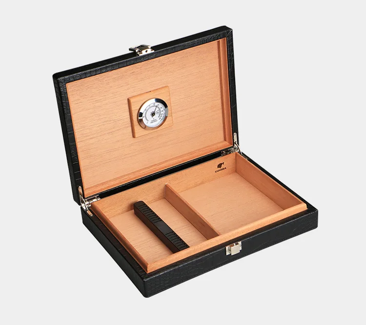 Crafted with a premium cedar wood lining, this cedar lined humidor provides the perfect environment to maintain the ideal humidity levels for your cigars, ensuring they stay fresh and retain their flavor. Cedar wood is renowned for its superior moisture regulation and protective qualities, making it the preferred choice for cigar storage.