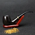Our classic pipe is crafted from high-quality red sandalwood, offering a luxurious touch and exceptional heat resistance. The elegant curve of the Bent Smoking Pipe ensures an easy grip, providing comfort even during prolonged use. Plus, it features a metal ring tobacco pipe design that adds a modern touch to its traditional appearance.