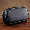 The Classic Zipper Smoking Bag in Black Lichee Pattern Leather is the ultimate Tobacco Pipe Case for the modern pipe enthusiast. Combining sleek aesthetics with unparalleled functionality, this exquisite smoking pipe case is designed to keep your smoking essentials organized and protected. Crafted with precision, it features enough space to securely hold two pipes, ensuring that your cherished wooden smoking pipe remains unharmed.