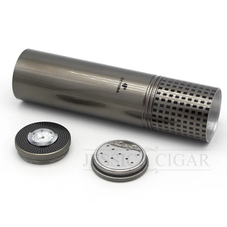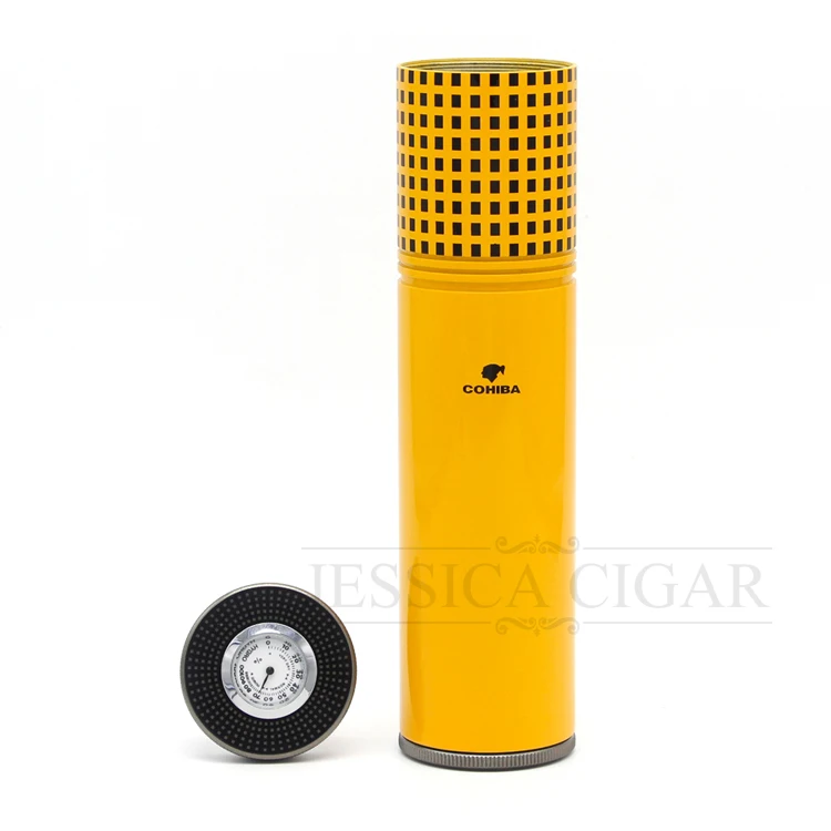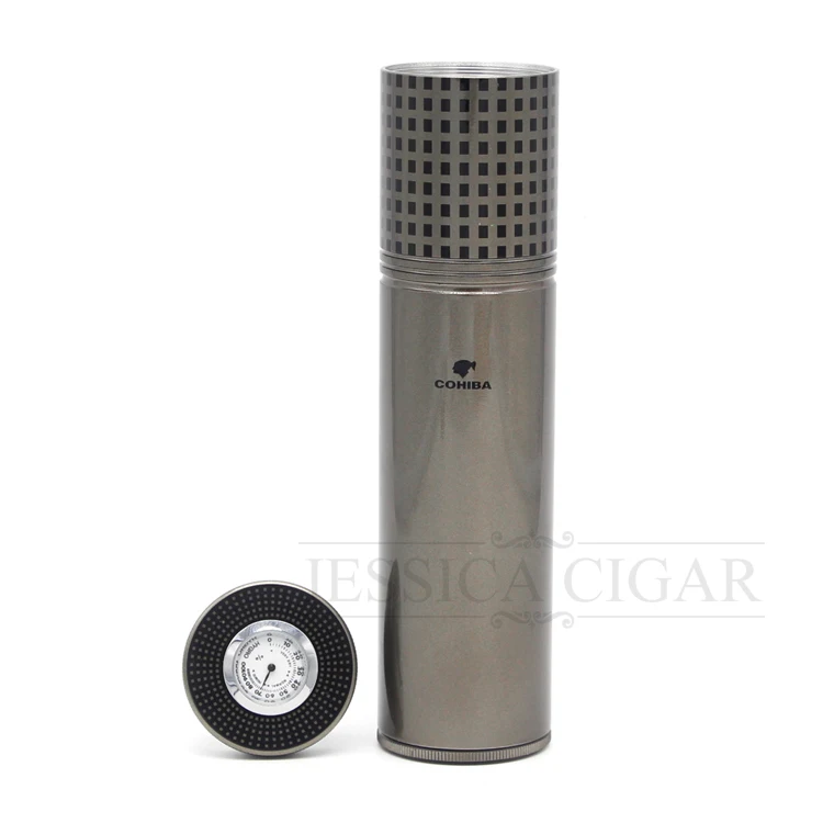 Looking for a reliable and stylish way to carry your cigars on the go? Our Aluminum Alloy Jar Cigar Travel Case with a built-in humidifier and hygrometer is your perfect travel partner. Engineered for the modern aficionado, this sleek cigar holder combines durability with high-end functionality, ensuring your cigars remain fresh and flavorful wherever your adventures take you.