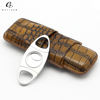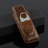 Brown Black Crocodile Pattern Leather Cigar Case Humidor with Stainless Cigar Cutter