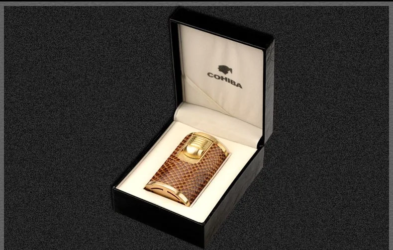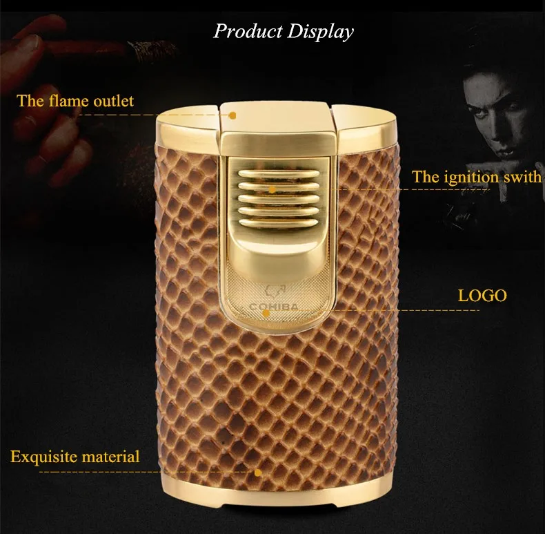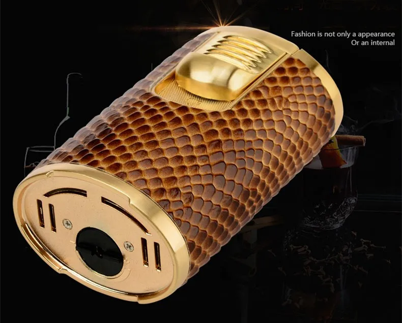 Whether you are lighting up a cigar to celebrate a special moment or simply enjoying a casual smoke, the Creative Design Snakeskin Pattern Torch Jet Lighter ensures a flawless flame every time. Its stylish design makes it an excellent conversation starter, while the robust functionality makes it a practical tool in any setting. Elevate your smoking rituals or gift it to a fellow enthusiast — this lighter set stands as an iconic symbol of class and reliability in the world of smoking accessories.