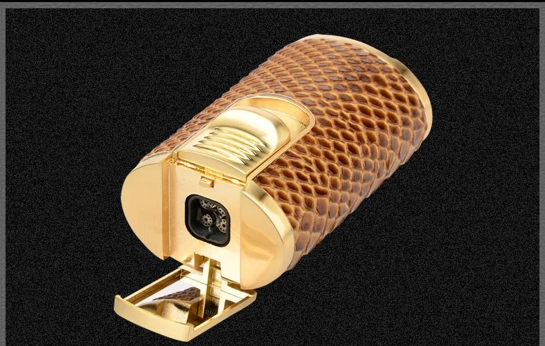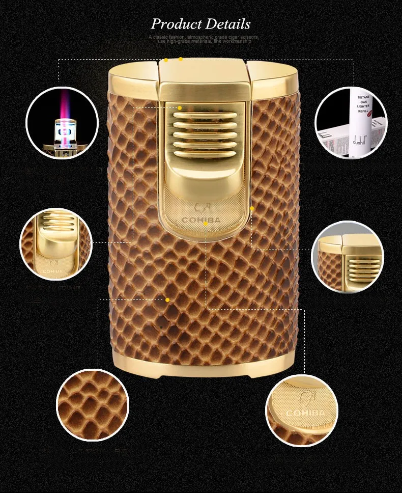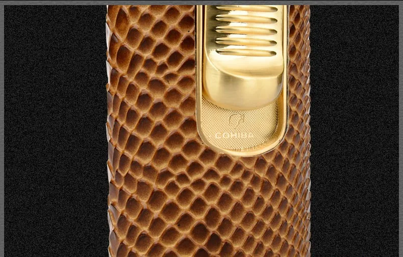 Whether you are lighting up a cigar to celebrate a special moment or simply enjoying a casual smoke, the Creative Design Snakeskin Pattern Torch Jet Lighter ensures a flawless flame every time. Its stylish design makes it an excellent conversation starter, while the robust functionality makes it a practical tool in any setting. Elevate your smoking rituals or gift it to a fellow enthusiast — this lighter set stands as an iconic symbol of class and reliability in the world of smoking accessories.