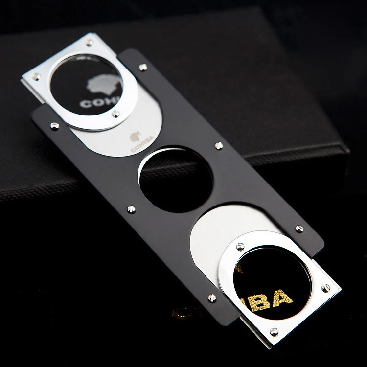 Double Blade Stainless Steel Black Cigar Cutter Smoking Accessory Guillotine Pocket Gadget