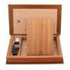Our cigar humidor box is expertly constructed with Spanish cedar wood, sealing in natural humidity to preserve the flavor and aroma of your cherished cigars. This finely tuned cigar preservation box is perfect for maintaining the ideal environment wherever you go, whether you’re at home or on the move.