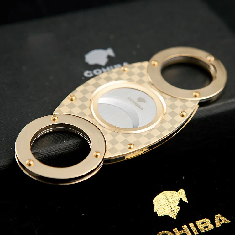 Introducing the Gadget Gold Tone Grid Double Blade Stainless Steel Shape Cigar Cutter Knife Pocket Zigarre Cuban Smoking Accessory 356FL, the ultimate companion for cigar aficionados seeking unparalleled precision and craftsmanship. This cigar cutter enhances not only the ritual of cigar smoking but also ensures that every puff is as satisfying as intended. Perfect for both personal use and as a sophisticated gift for smoking enthusiasts, this accessory seamlessly blends functionality with sleek design.