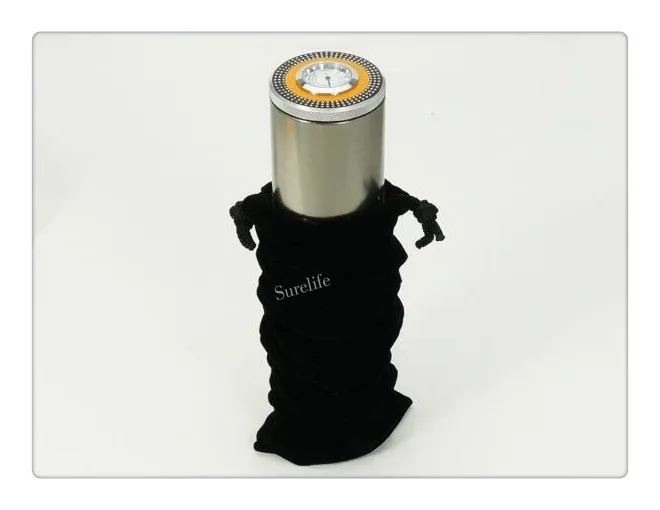 Discover the epitome of cigar luxury and protection with the Yellow&Black&Silver Aluminium Alloy Travel Cigar Tube Portable Jar MINI Humidor W/ Humidifier Hygrometer. Crafted for the discerning smoker on the move, this sleek and portable cigar holder ensures that your cigars remain in optimal condition, wherever your adventures take you.
