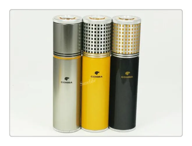 Discover the epitome of cigar luxury and protection with the Yellow&Black&Silver Aluminium Alloy Travel Cigar Tube Portable Jar MINI Humidor W/ Humidifier Hygrometer. Crafted for the discerning smoker on the move, this sleek and portable cigar holder ensures that your cigars remain in optimal condition, wherever your adventures take you.