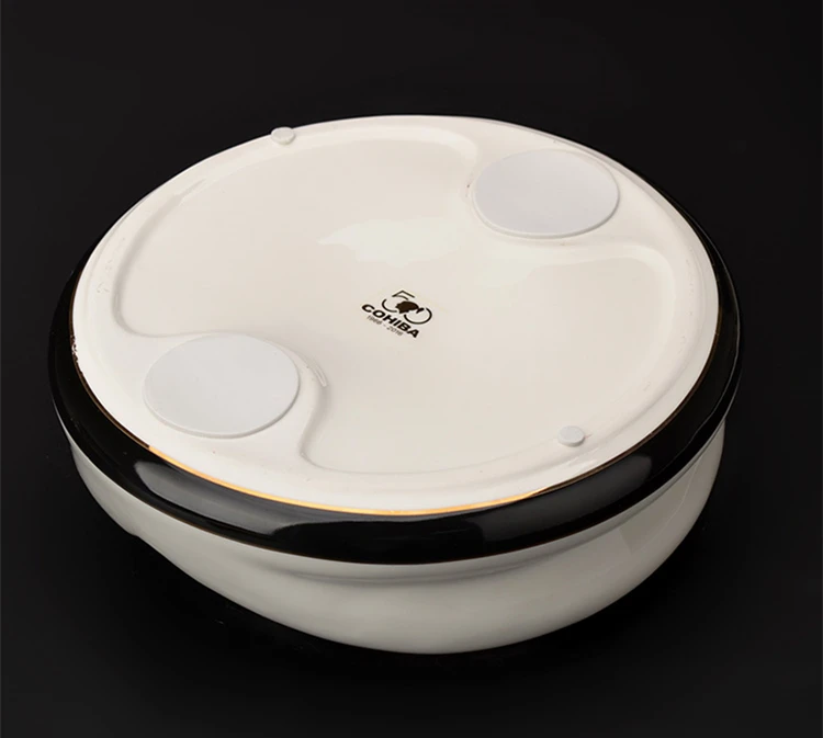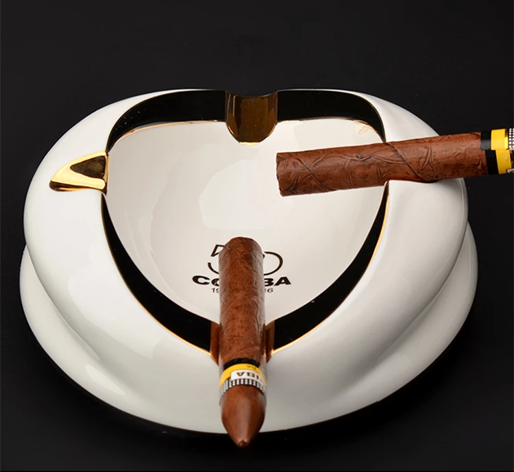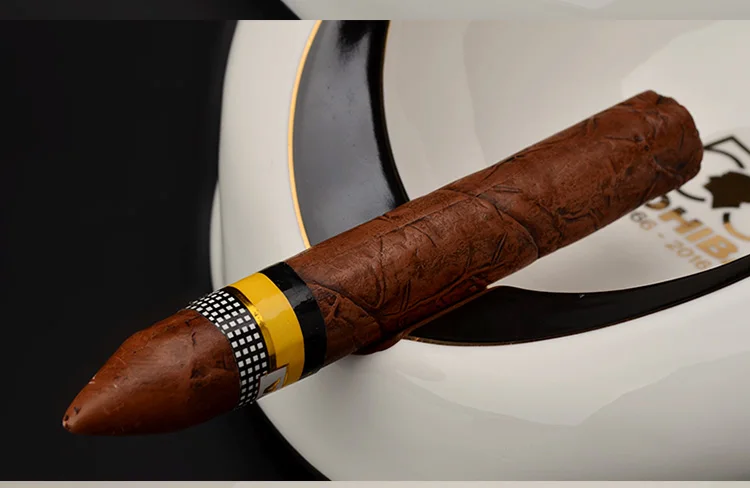 Whether you’re hosting a sophisticated get-together or enjoying a solitary smoke, the COHIBA cigar ashtray is your perfect partner. Its substantial ceramic build provides stability, while the artistic round shape complements any decor, making it both a functional and decorative piece. This well-crafted four-slot cigar ashtray not only holds your cigars securely but also captures the ash neatly, keeping your space tidy and stylish.