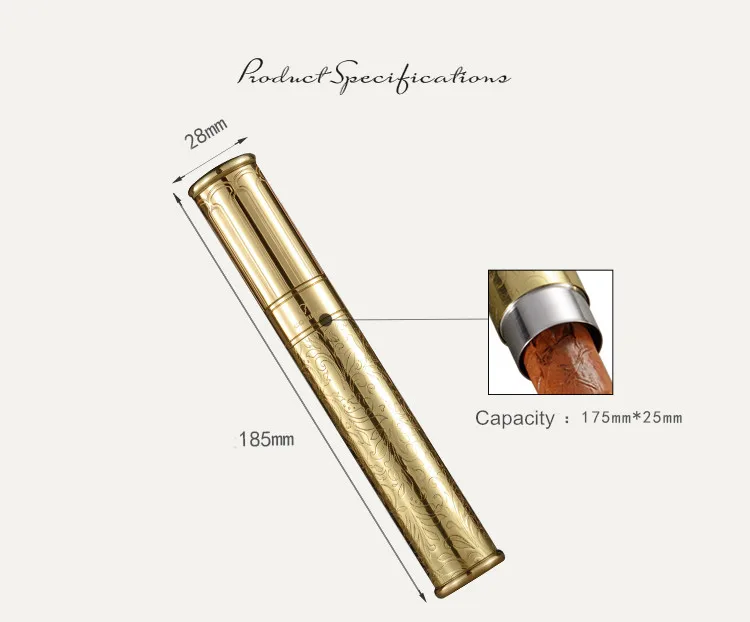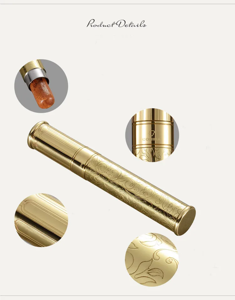 Our COHIBA cigar tube is meticulously crafted from premium stainless steel, ensuring durability and longevity. The stunning carved golden and silvery finish elevates your style, making it an exquisite accessory for both personal use and gifting.