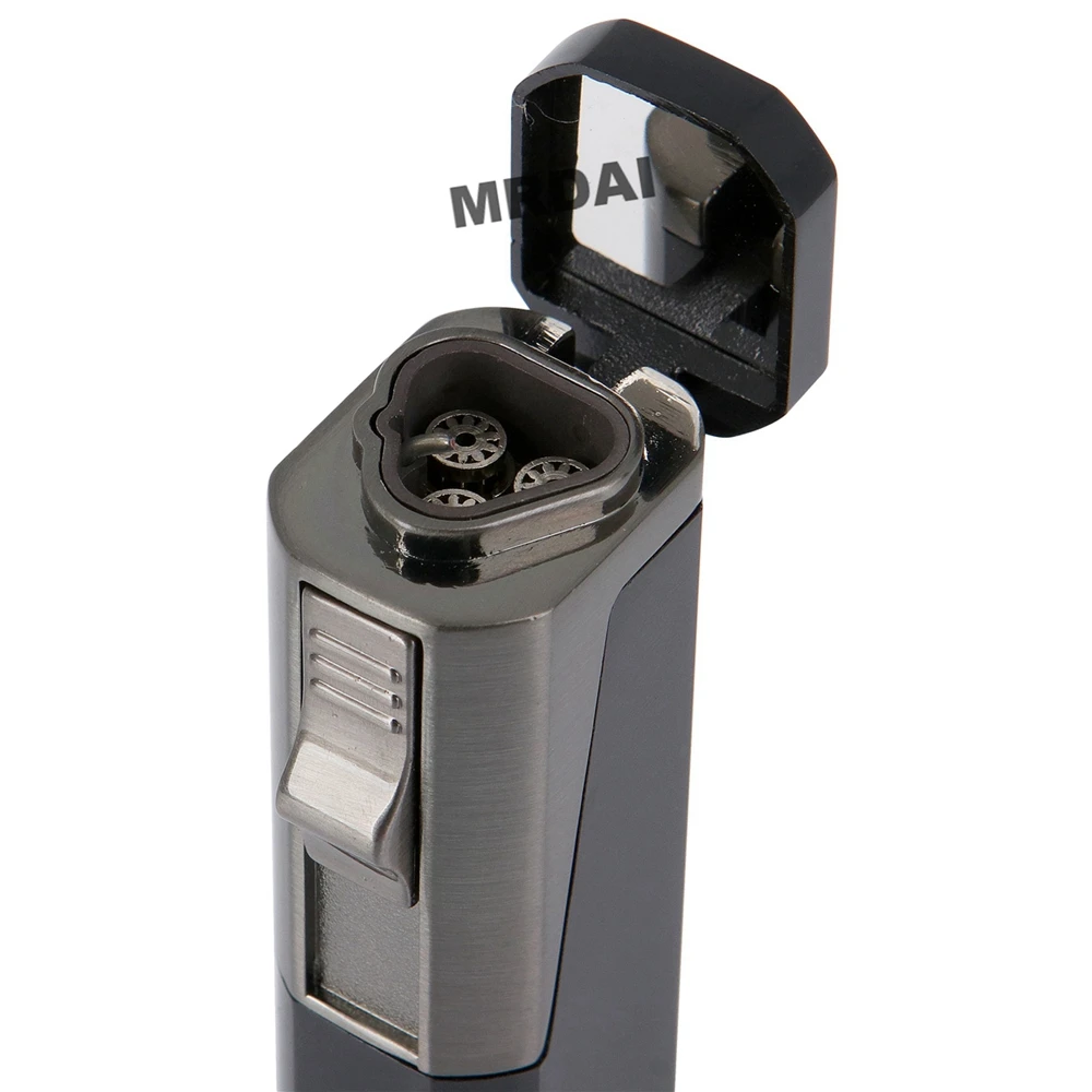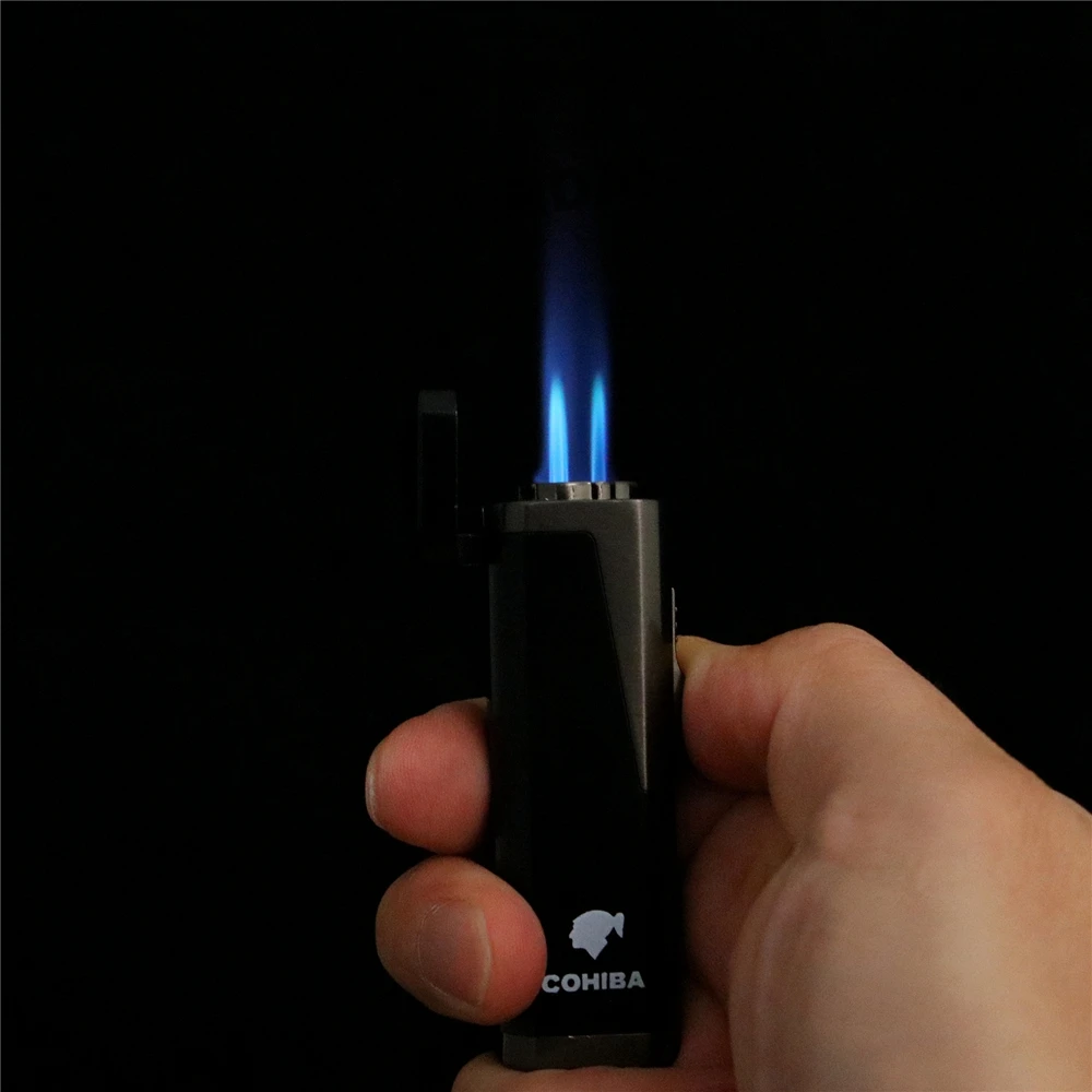 Harness the power of three with our refillable jet flame lighter. This lighter offers a triple blue flame that ensures an even, reliable ignition every time, even in windy conditions. Gone are the days of struggling to light your cigar or cigarette outdoors. Here’s why this durable windproof lighter is a smoker’s delight: