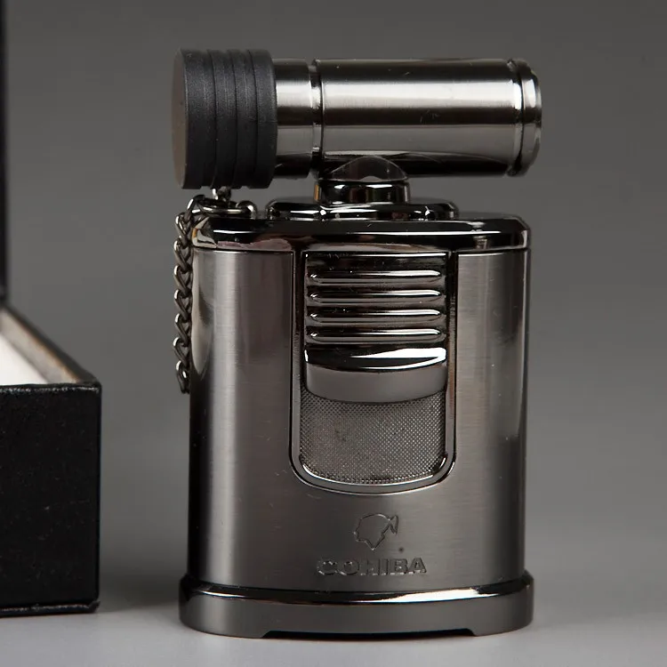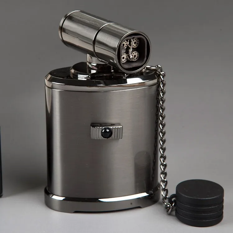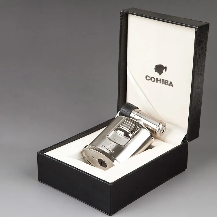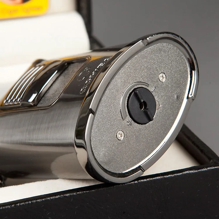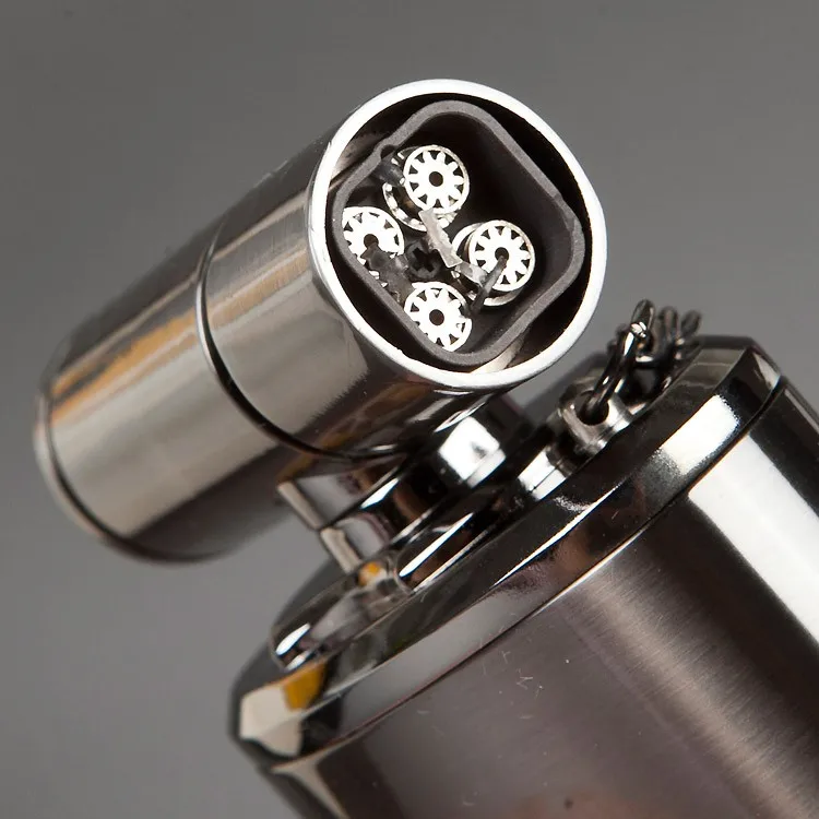 Crafted with a sleek metal finish in dark and silver tones, this luxury torch lighter not only looks stunning but is built to last. The four-torch jet flame ensures a consistent and powerful ignition, even in the harshest of winds—making it the ultimate windproof cigar lighter for those untamed outdoor adventures or refined indoor gatherings.