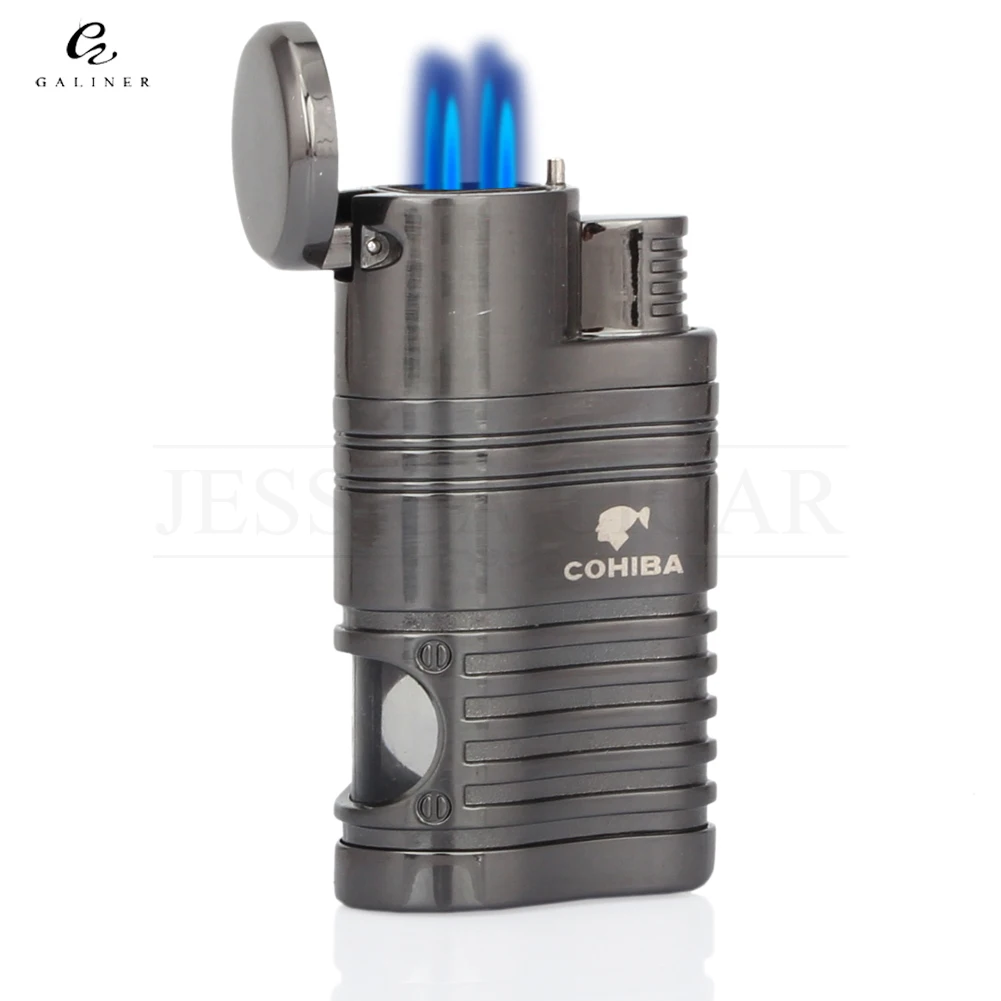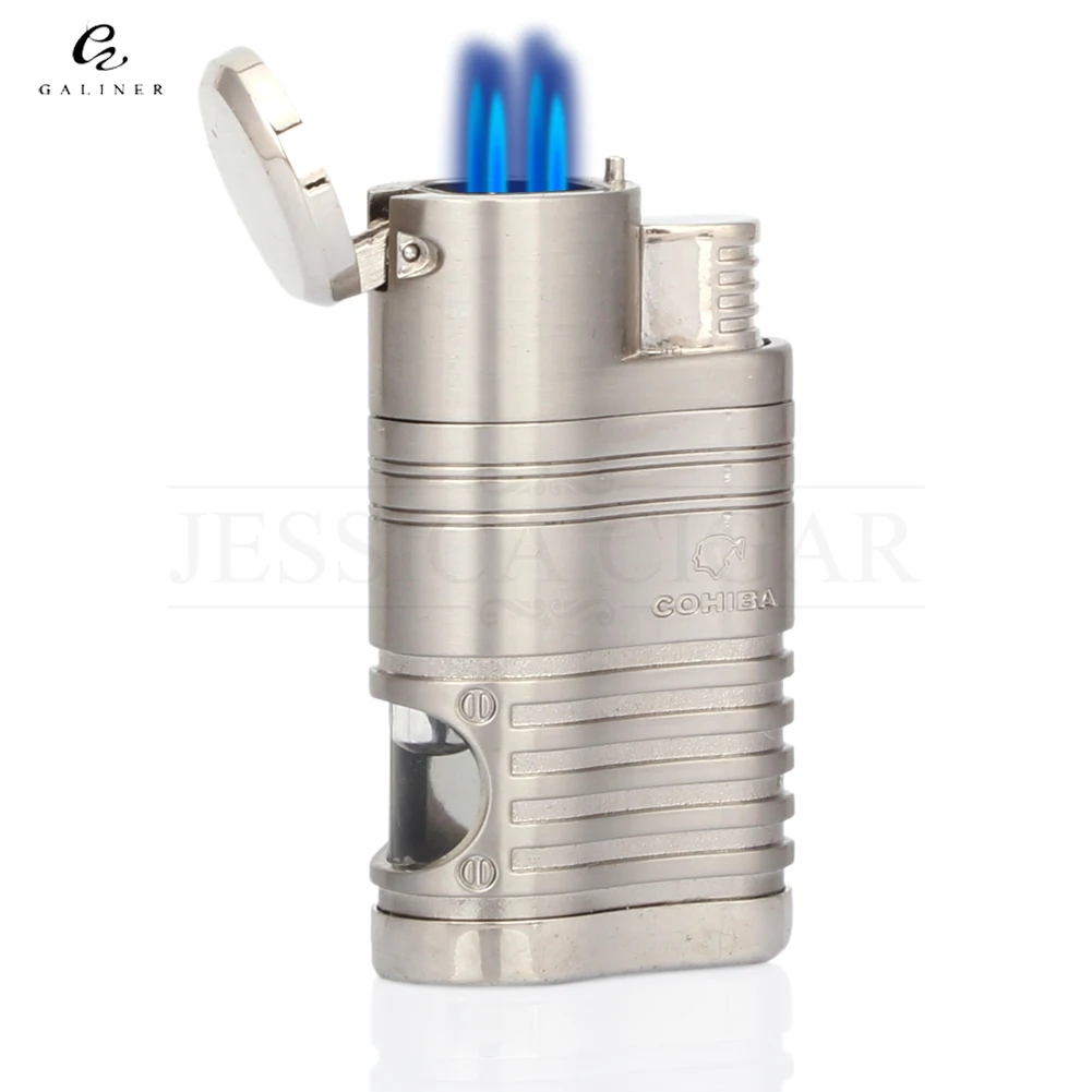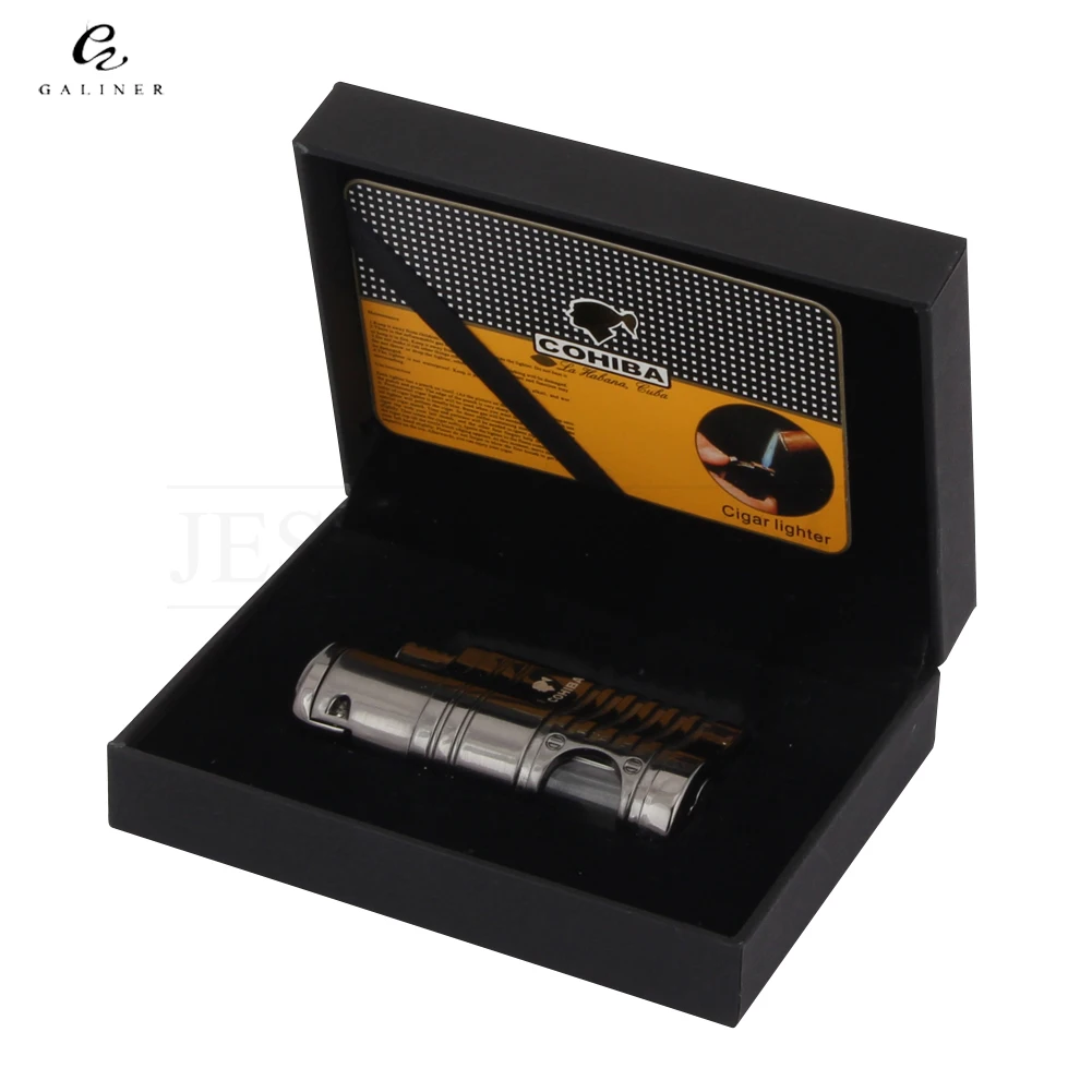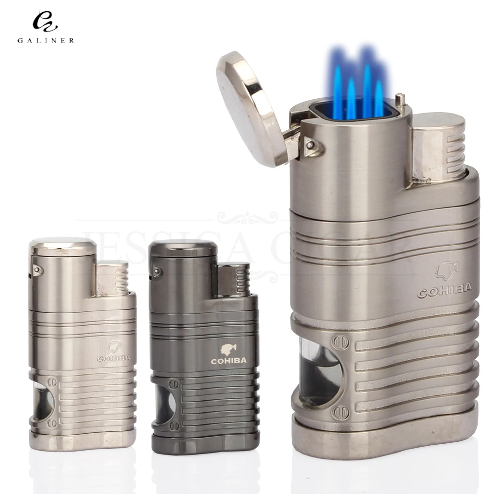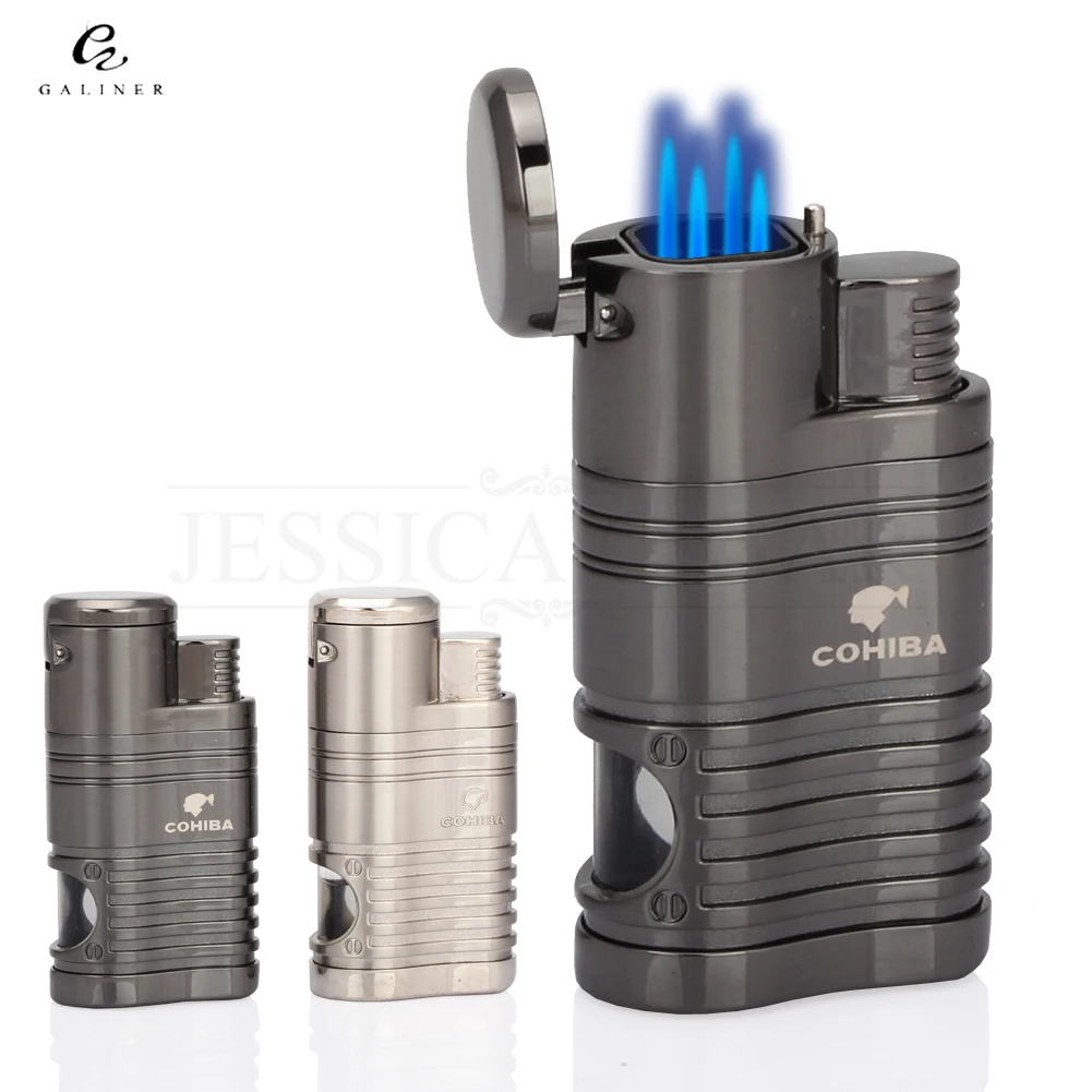 COHIBA Refillable Gas Lighters Cool 4 Jet Flame Cigar Torch Lighter Butane Metal Windproof Cigarette Lighter