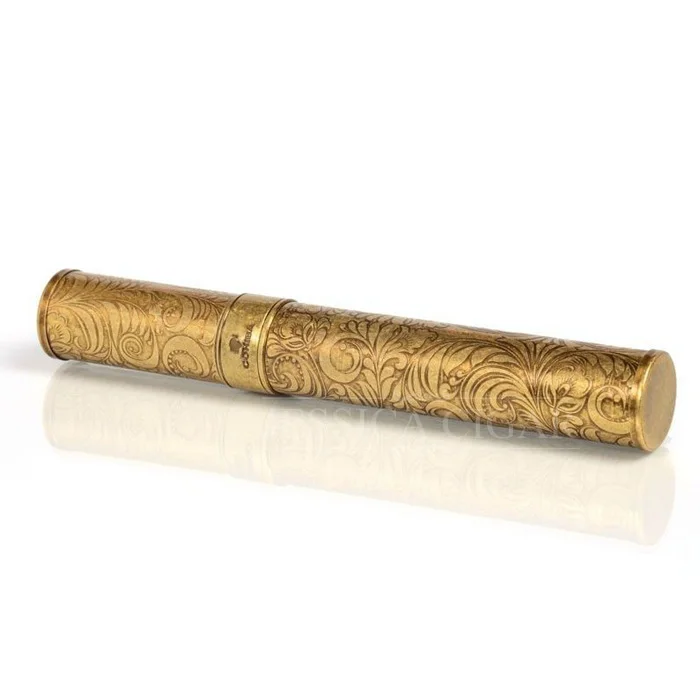 The intricate flower pattern set against a rich bronze hue encapsulates a vintage appeal while the durable stainless steel assures longevity. Tailored for connoisseurs, this cigar tube holder serves as an ideal companion during your travels or outings.