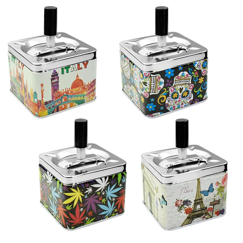 Introducing the Colorful Wallpaper Cigarette Ashtray with Round Push Button Spinning Design—a smoking accessory that combines elegance and functionality in one beautiful package. Perfect for your home, office, bar, restaurant, or outdoor area, this spinning cigarette ashtray is not just a simple utility but a conversation starter that elevates your smoking environment.