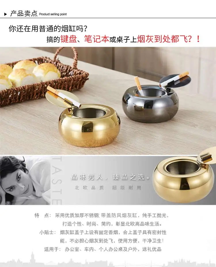 Introducing the Creative Drum Type Stainless Steel Golden Black Windproof Ashtray with Cover—your ultimate solution for outdoor and indoor smoking. Crafted with a modern aesthetic, this ashtray is much more than a mere accessory; it’s a statement piece for any smoker who values style and practicality. Its sleek golden black finish complements any setting, whether you’re entertaining guests on the patio or relaxing in your living room.