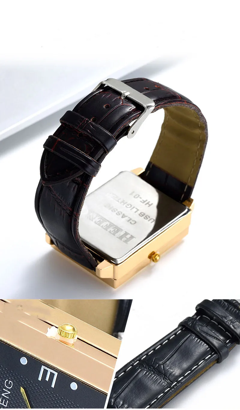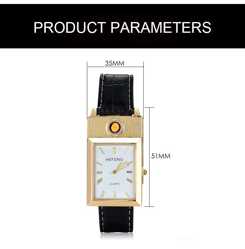 Introducing the ultimate accessory for style-savvy smokers: the Creative Personality Watch Charging Lighter. Combining the timeless elegance of a wristwatch with the modern convenience of a flameless USB lighter, this men’s gadget watch offers functionality and flair in one sleek package. Whether you’re stepping out for an evening gala or a casual meet-up, this wearable lighter ensures you’re always ready to light up, any time, anywhere.