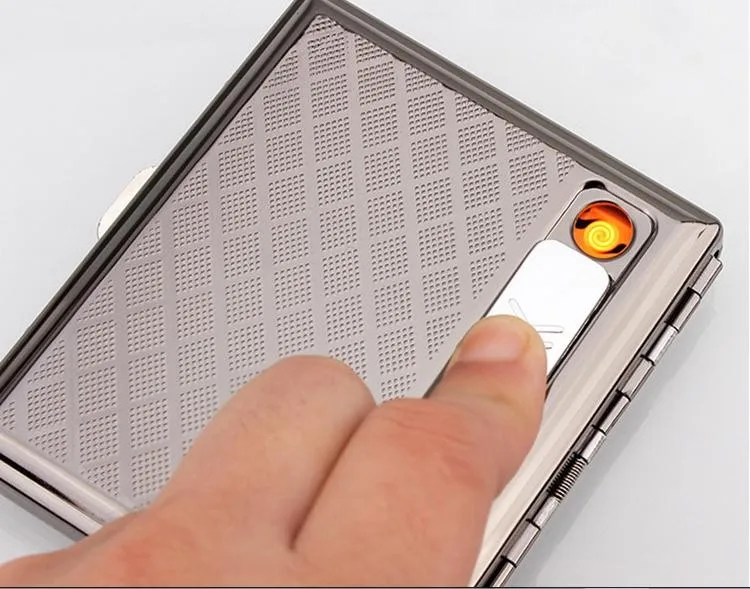 Introducing the Creative Stainless Steel Cigarette Case with Electronic Rechargeable Windproof Flameless USB Cigarette Lighter — your new favorite smoking accessory. Designed for those who appreciate style and convenience, this product combines two essentials in one sleek package.