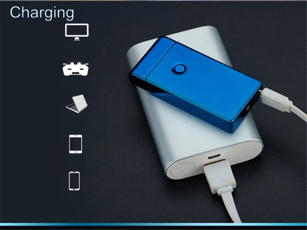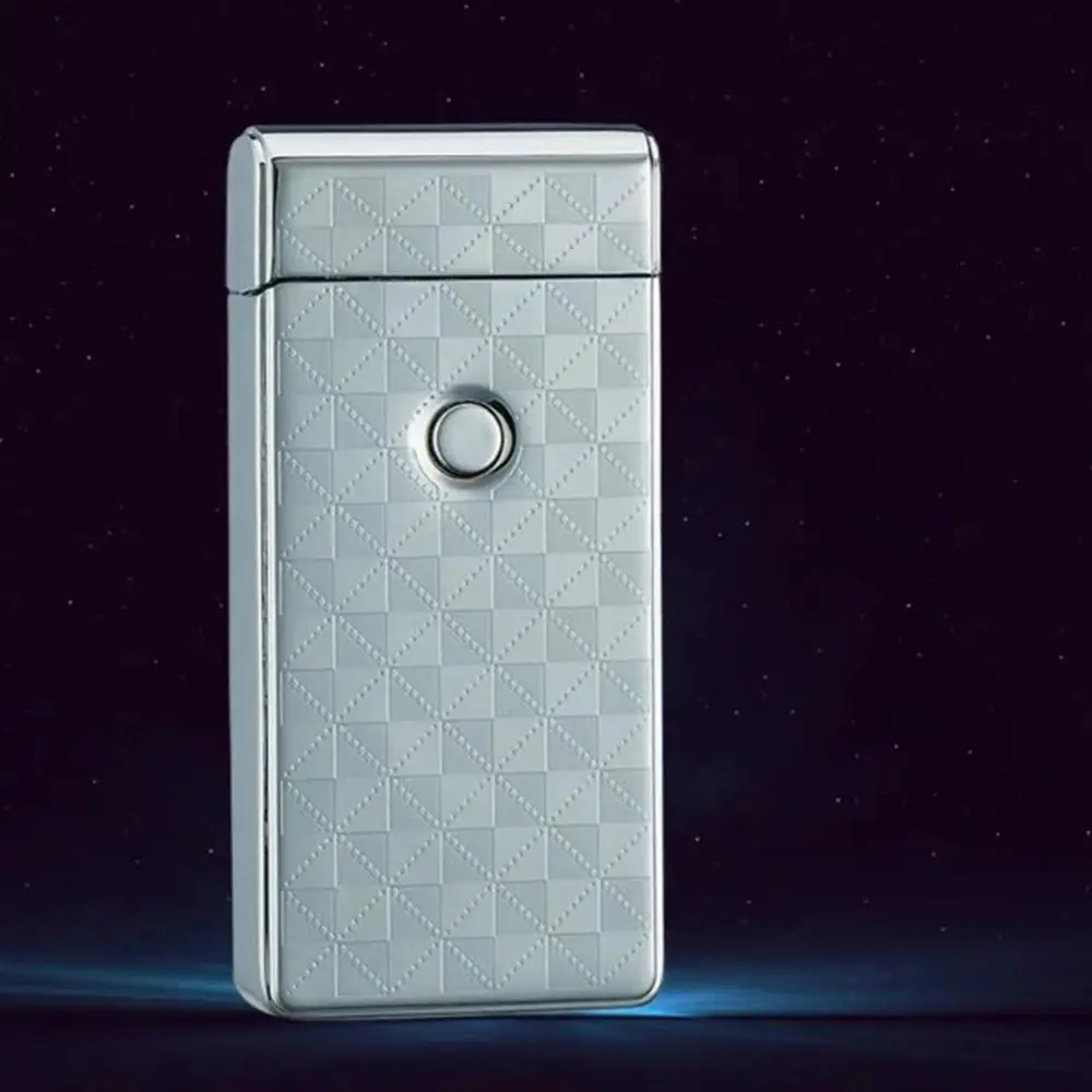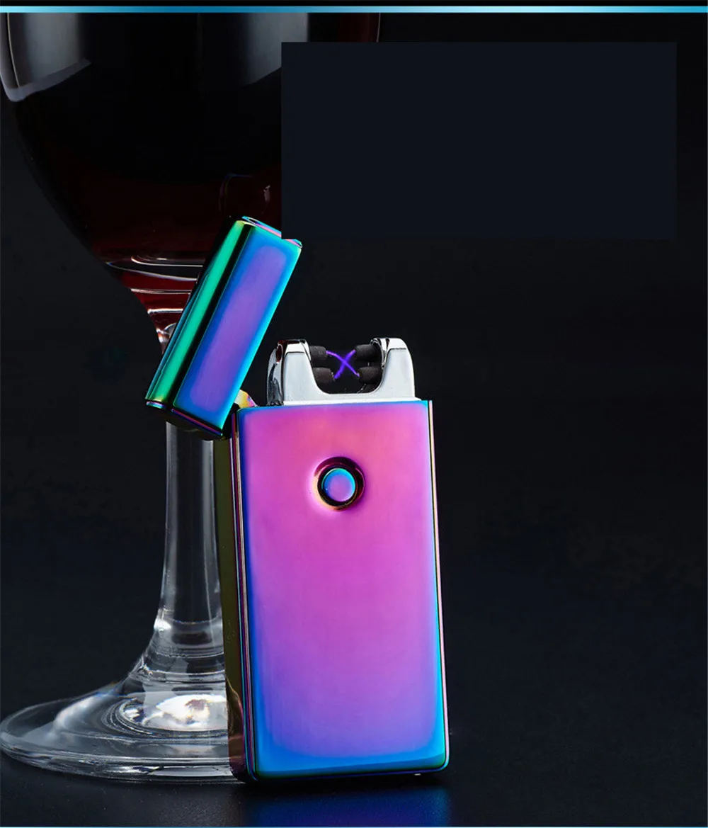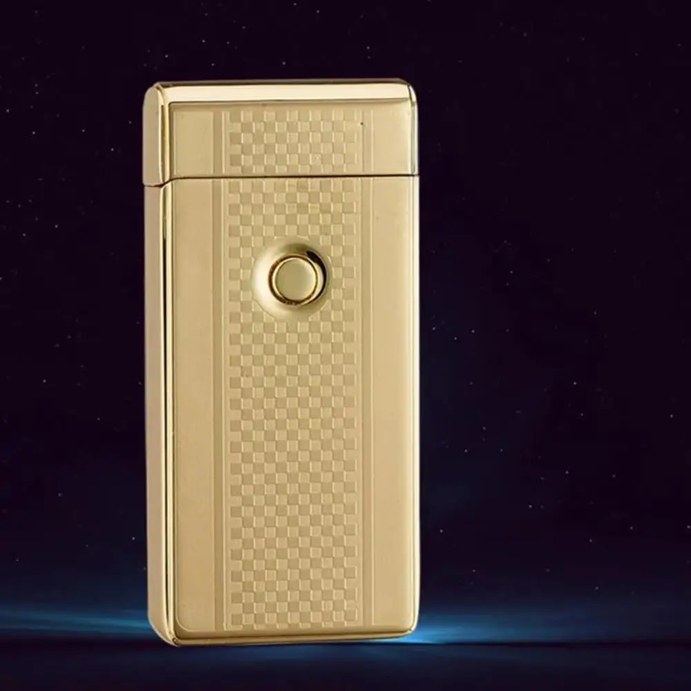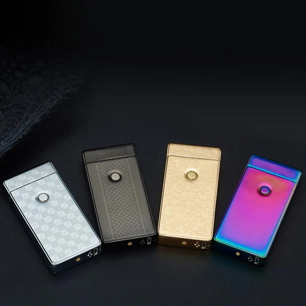 Discover the sleek sophistication of the Electronic Cigar Cigarette Lighter Windproof Ultra-thin Fire Cross USB Rechargeable Double Pulsed Arc Flameless Cigar Lightes. Designed for the modern smoker, this portable flameless lighter combines cutting-edge technology with style, offering an innovative way to light up, even in challenging conditions.