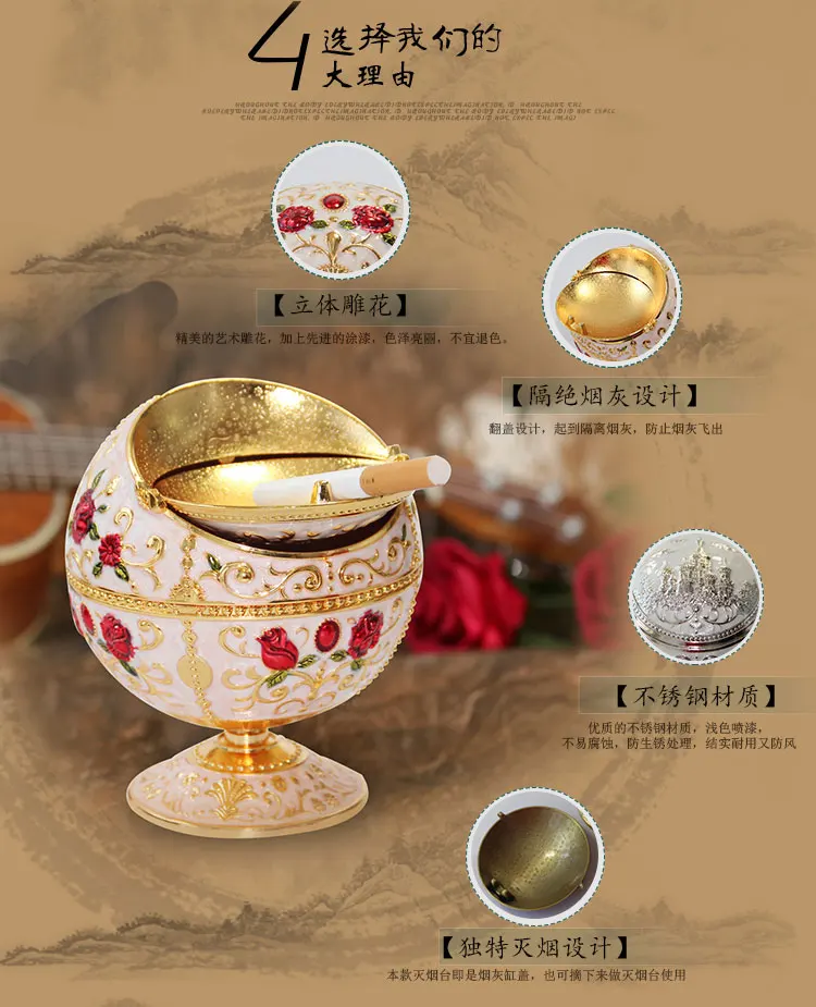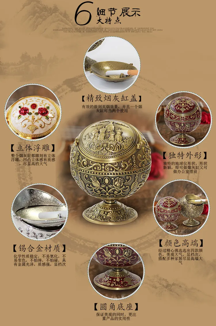 Indulge in sophistication with the Europe Type Ashtray with Cover, a creative and high-grade option for those who appreciate elegance and practicality in their smoking accessories. This decorative ashtray with cover is not just a functional piece but an accent of luxury and style that perfectly complements any setting, whether at home, in the office, or as a thoughtful gift.