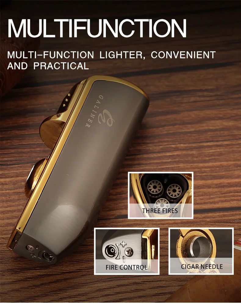 Elevate your cigar smoking experience with the Galiner 3 Torch Cigar Lighter, designed for aficionados who value precision and reliability. This windproof cigar lighter ensures a seamless flame every time, allowing you to savor your cigar moments without interruption. Whether you’re a casual smoker or a dedicated connoisseur, this lighter brings style and functionality to your collection of cigar smoking accessories.