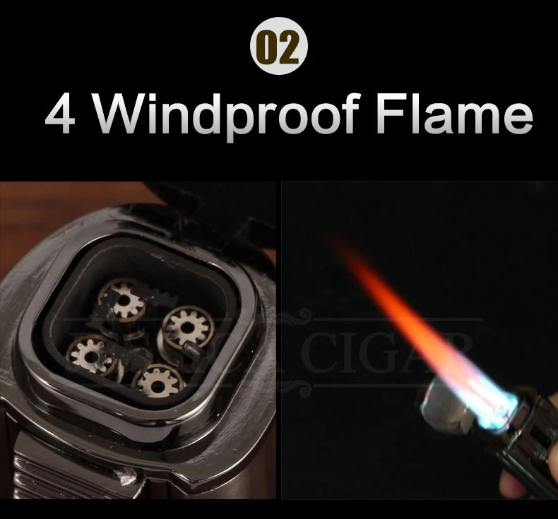 - Quadruple Jet Flames: The powerful four-torch flames are designed to provide an even light, ensuring uniformity in burning your favorite cigars.