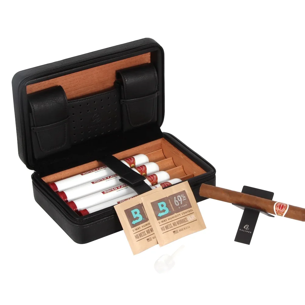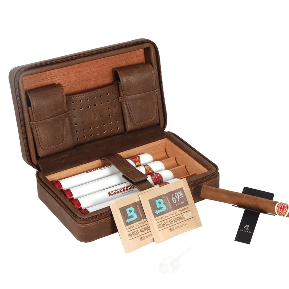 Choose the GALINER Travel Humidor Leather Cigar Case to ensure every cigar enthusiast can enjoy their favorite pastime in style and with peace of mind, knowing their cigars are safeguarded against the elements.