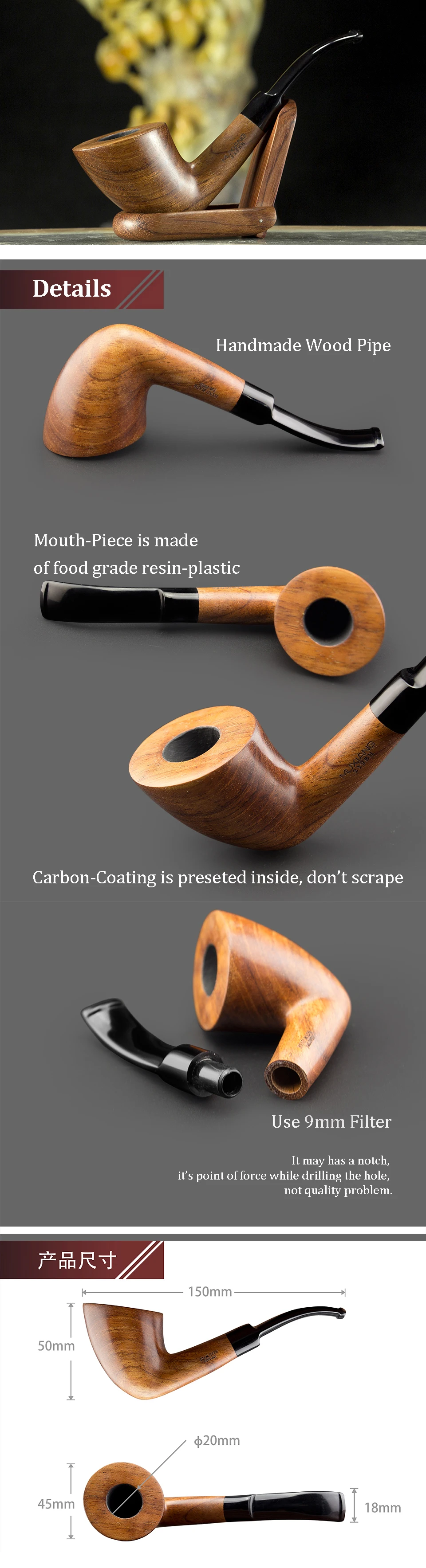 Designed with the smoker’s needs in mind, our pipe features a 9mm filter system that ensures an enjoyable smoke with reduced harshness. This thoughtful inclusion is perfect for both seasoned enthusiasts and newcomers to tobacco pipe smoking, letting you relish each draw with comfort and ease.
